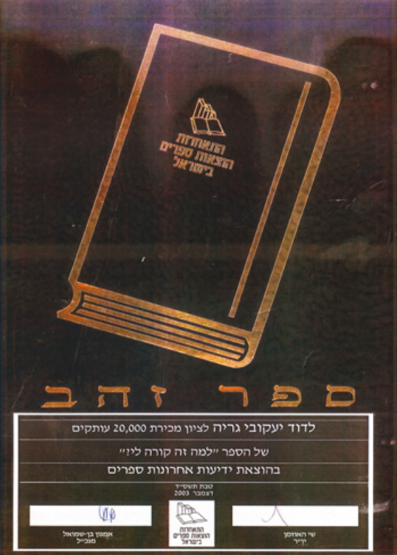 ספרו הראשון למה זה קורה לי? יצא לאור בהוצאת ”ידיעות אחרונות“ והפך לרב מכר, שזיכה את הרב בשנת התשס“ד (2003)בספר זהב ובספר פלטינה, שהוענקו לו על ידי התאחדות הוצאת הספרים בישראל.